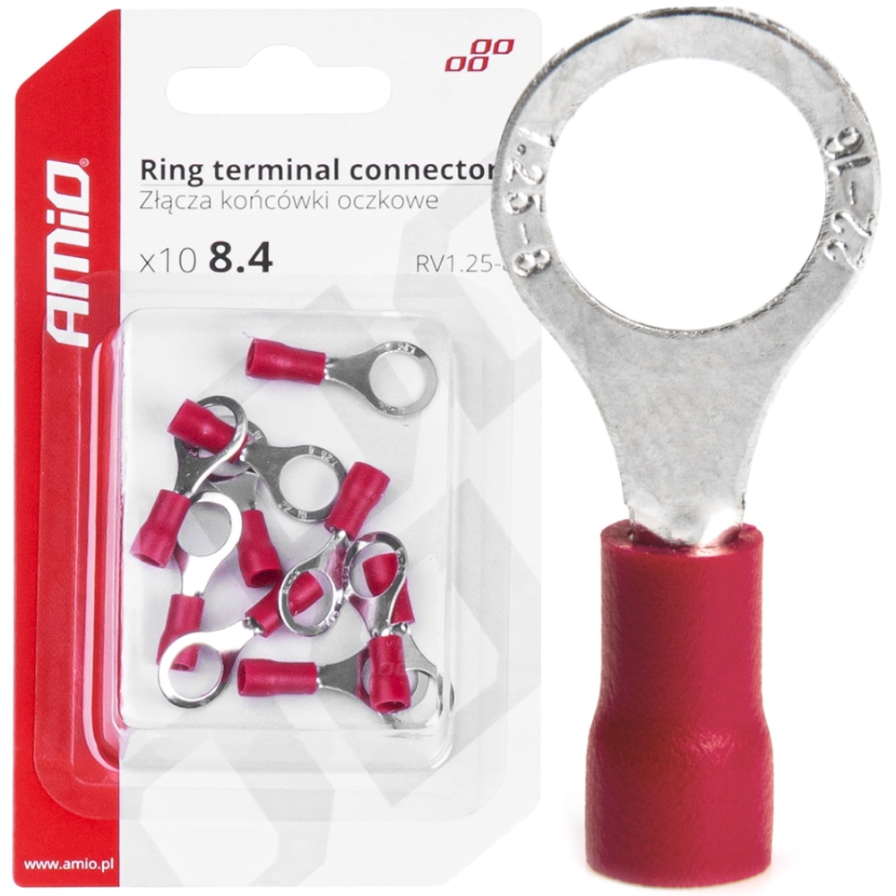 AMIO Konektor końcówka oczko 8,4 mm 10 szt.
