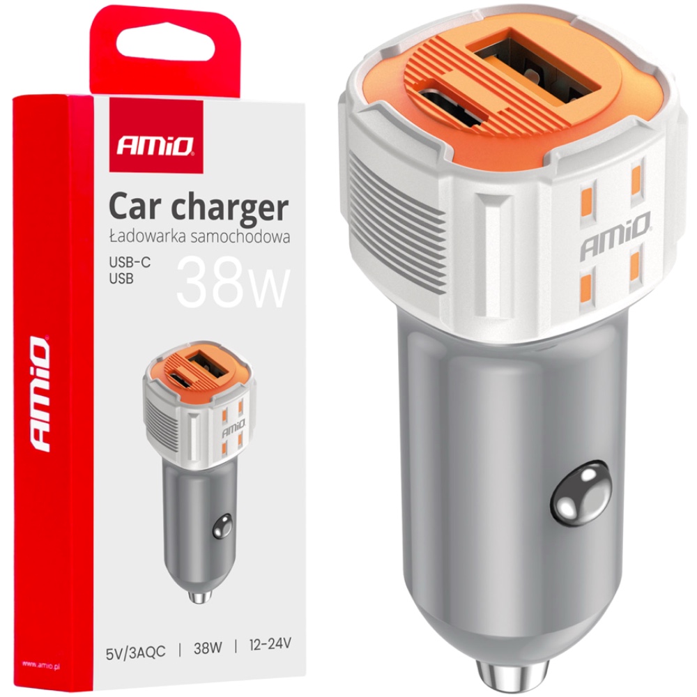 AMIO Ładowarka samochodowa 38W USB-A/USB-C
