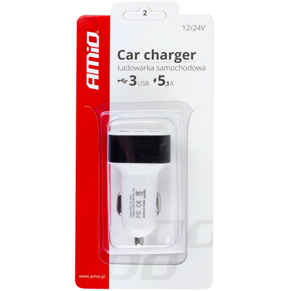 AMIO Ładowarka samochodowa 3xUSB 5,1A