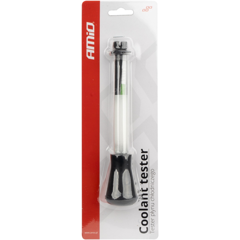 Miernik płynu chłodniczego pozwala w szybki i skuteczny sposób zweryfikować parametry płynu chłodniczego. Za jego pomocą możemy określić temperaturę zamarzania oraz wrzenia płynu chłodniczego, jaki mamy zalany w samochodowym układzie chłodzenia. Przezroczyste ścianki zbiorniczka umożliwia również sprawdzenie czystości płynu. Dzięki miernikowi dowiemy się czy nie jest zbyt wysoka temperatura zamarzania płynu lub zbyt niska wrzenia. Warto raz na jakiś czas zweryfikować parametry płynu chłodniczego, aby zapewnić bezpieczeństwo układu chłodniczego, zarówno podczas zimy jak w lecie.