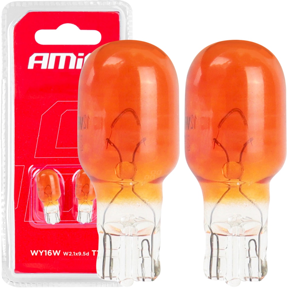 AMIO Żarówka 12V WY16W T15 AMBER pomarańczowa W2.1×9.5d Zestaw 2 szt