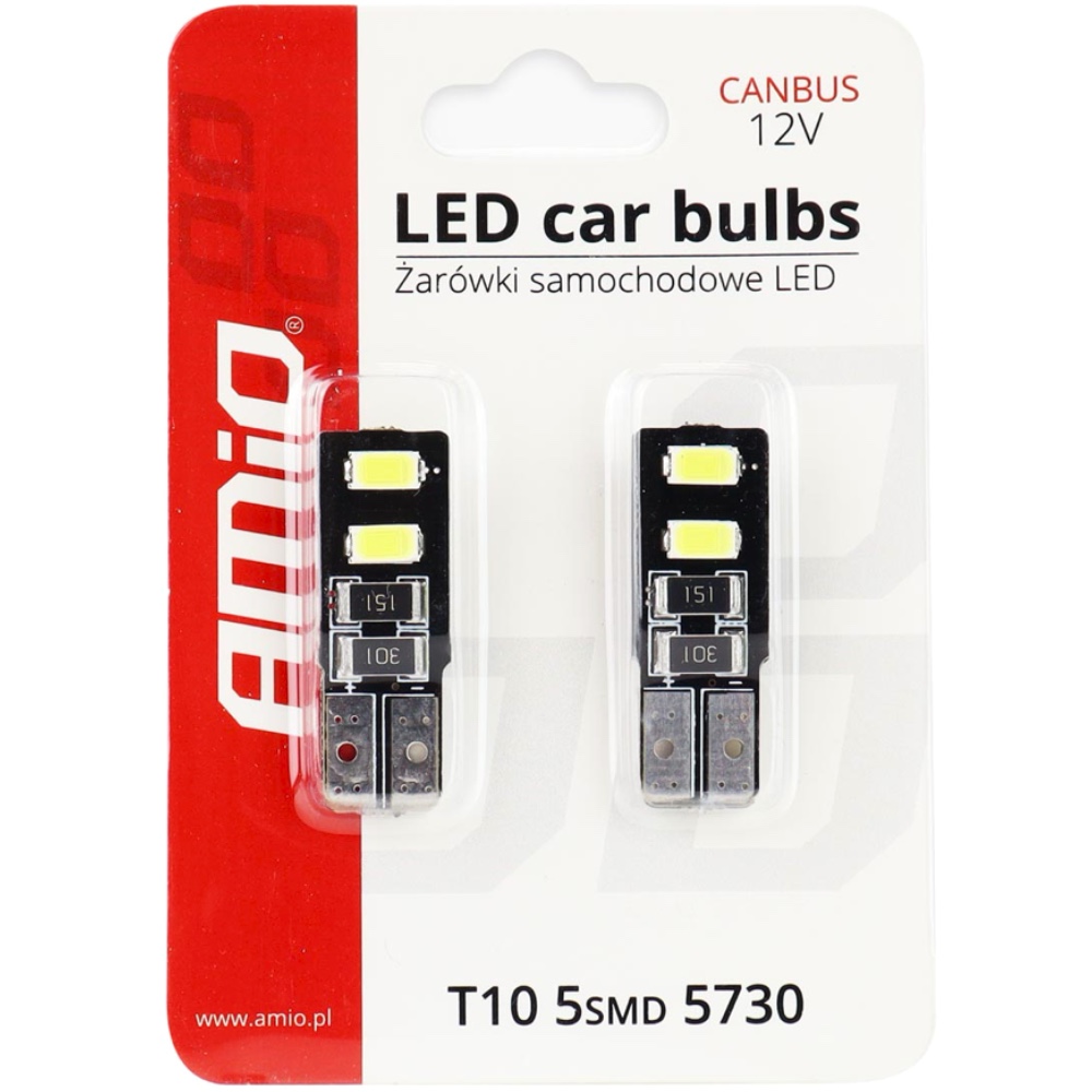 AMIO Żarówka LED CANBUS 12V W5W T10 White 4SMD
