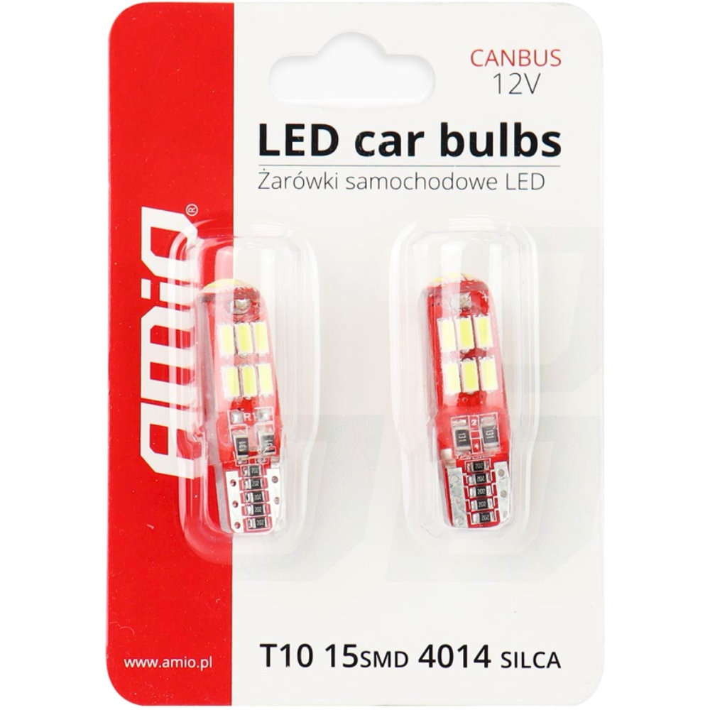 AMIO Żarówki LED CANBUS 15SMD 4014 T10e W5W SILCA White 12V
