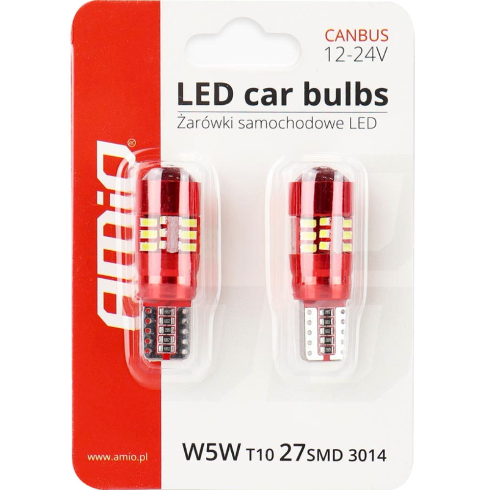 AMIO Żarówki LED CANBUS 27SMD 3014 T10e W5W White 12V 24V