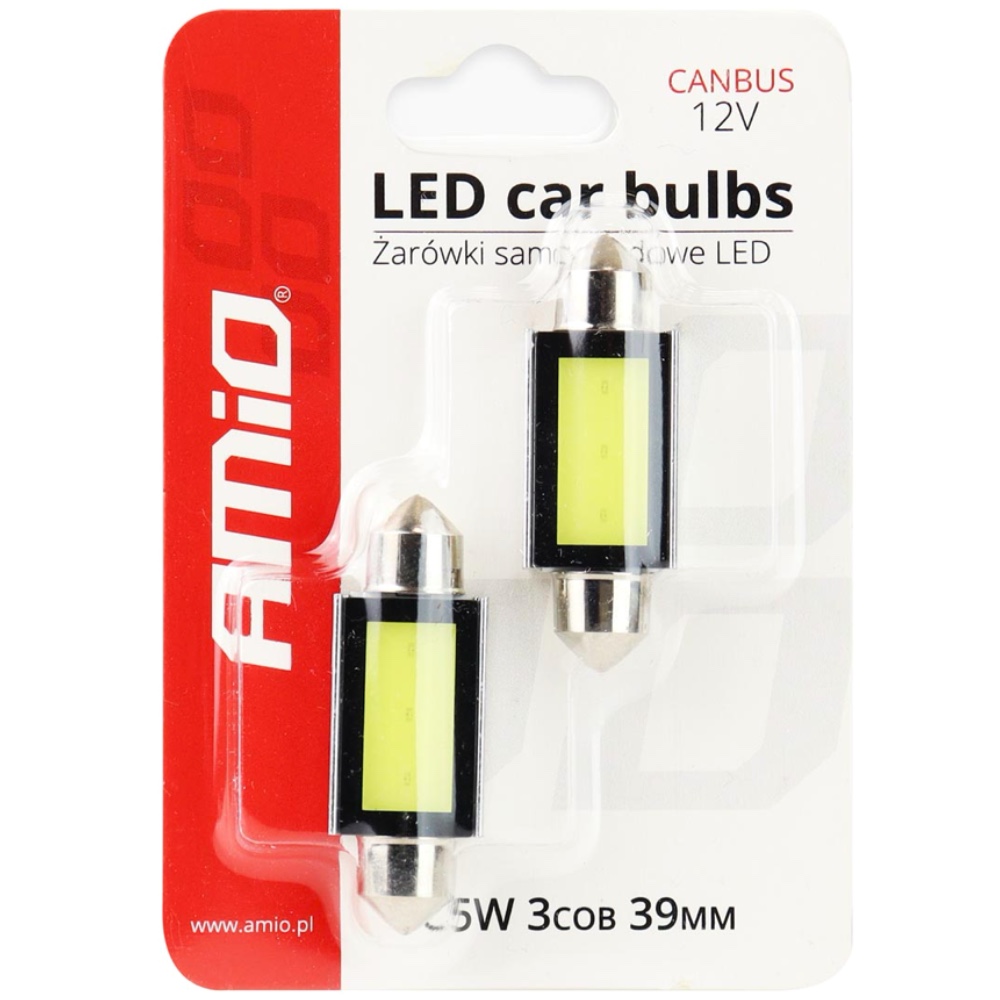 AMIO Żarówki LED CANBUS COB3 Festoon C5W C10W C3W 39mm White 12V