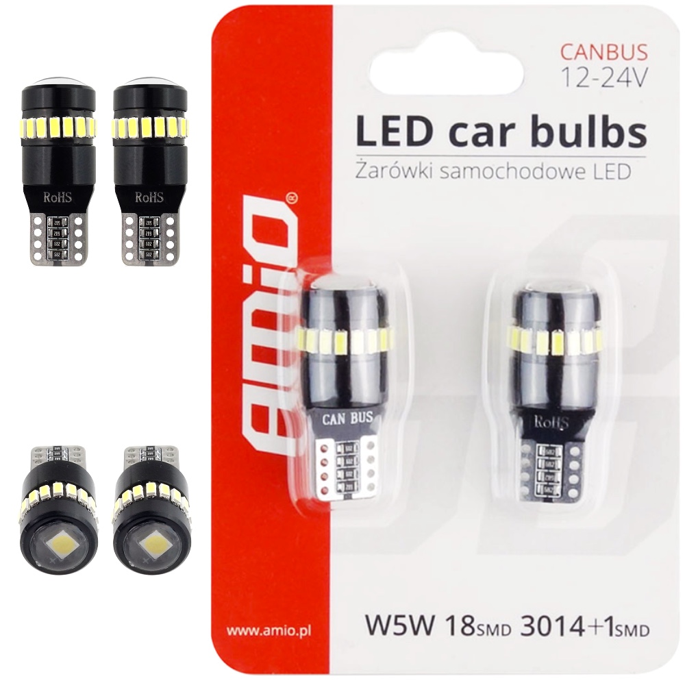 AMIO Żarówki LED CANBUS T10 W5W 18SMD 3014 + 1SMD White 12V 24V