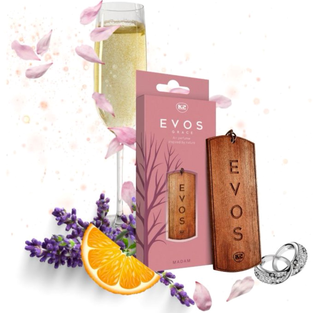 K2 EVOS Grace to inspirowany naturą i nasączony wdziękiem, niezwykły samochodowy odświeżacz powietrza w formie drewnianej zawieszki. Wykonana z litego drewna z dwustronnym grawerem, zdobi wnętrze auta niczym zapachowa biżuteria.