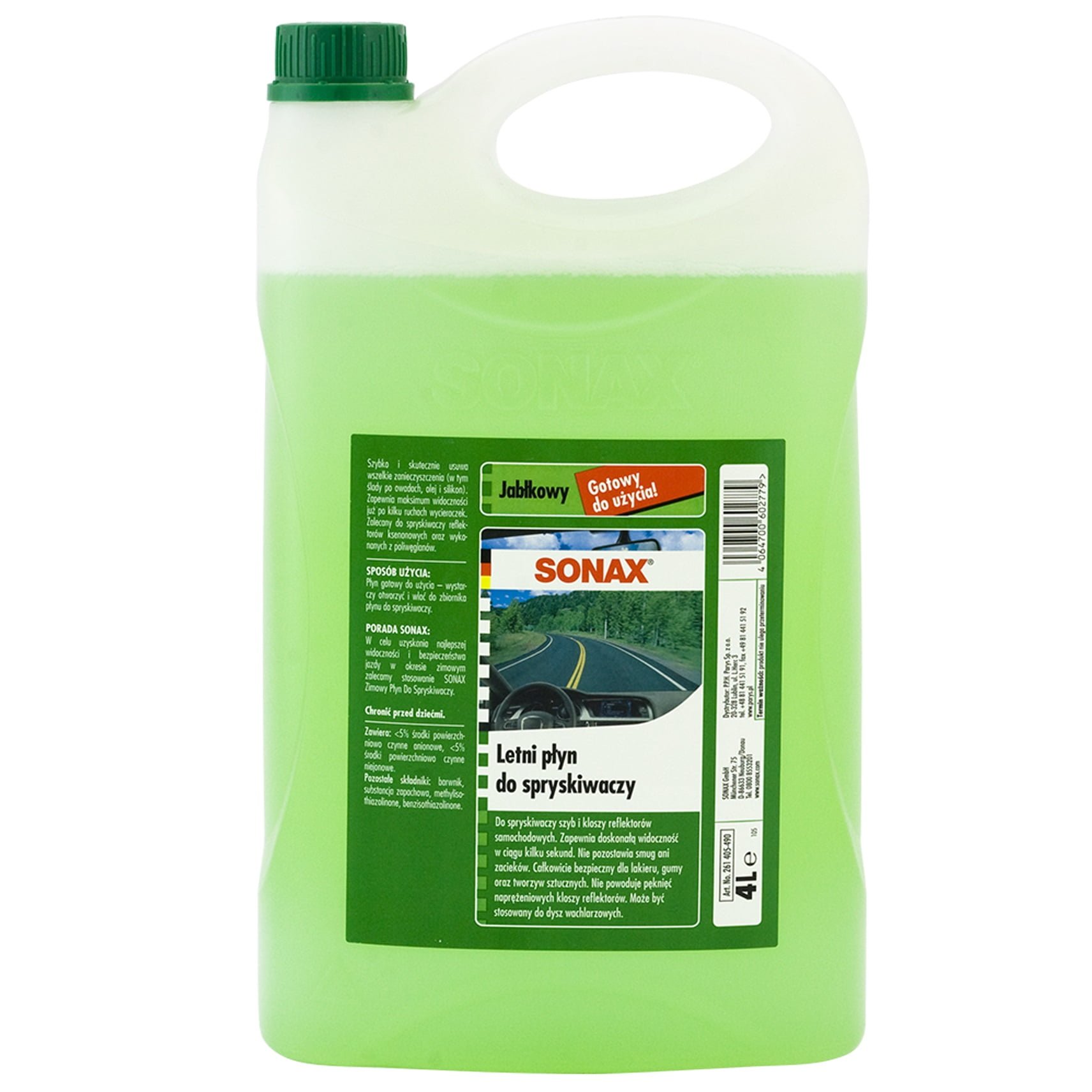 Gotowy do użycia letni płyn do spryskiwaczy szyb i reflektorów samochodowych. Dostępny w czterych przyjemnych zapachach. Szybko usuwa owady, olej, sadzę, silikon i inne tłuste zabrudzenia. Nie powoduje pęknięć naprężeniowych na szkłach reflektorów. Można stosować do dysz wachlarzowych.