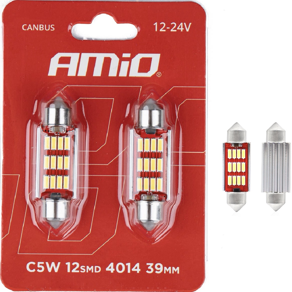 AMIO Żarówki LED CANBUS 4014 12SMD Festoon C5W C10W C3W 39mm Białe 12V 24V